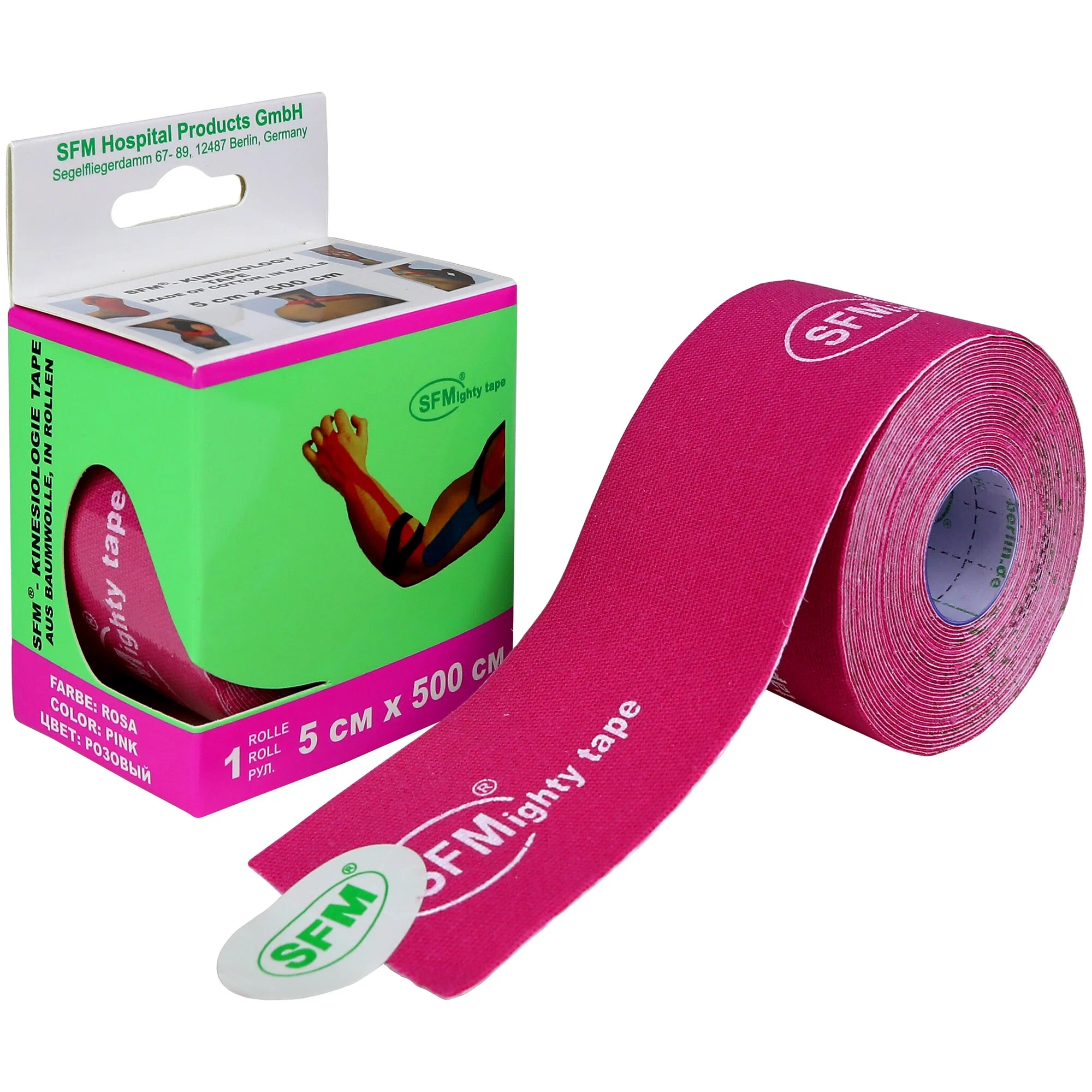 Лента кинезиологическая SFM-plaster на хлопковой основе розовая рулон 5х500см