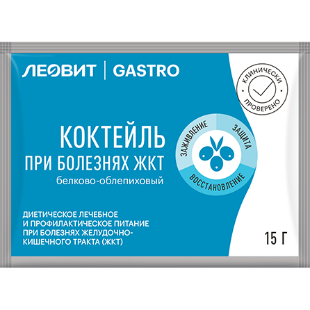 ЛЕОВИТ GASTRO КОКТЕЙЛЬ ПРИ БОЛЕЗНЯХ ЖКТ БЕЛКОВО-ОБЛЕПИХОВЫЙ (Специализированный пищевой продукт диетического лечебного и диетического профилактического питания).