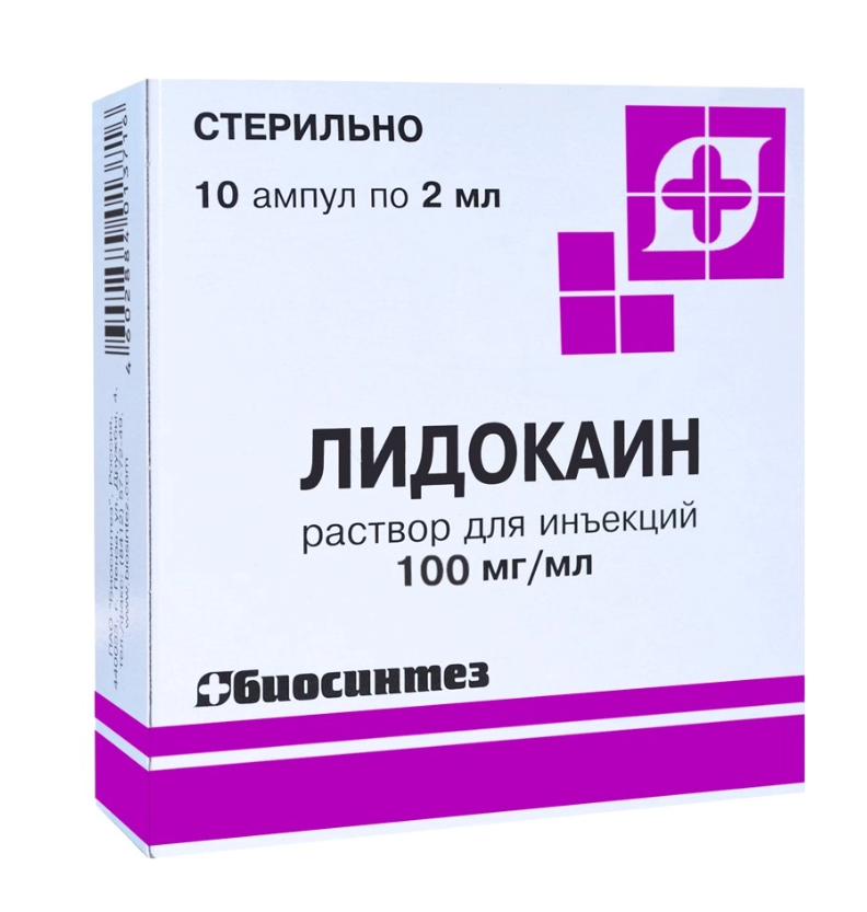 Лидокаин раствор для инъекций 100мг/мл ампулы 2мл №10/пачка/Биосинтез