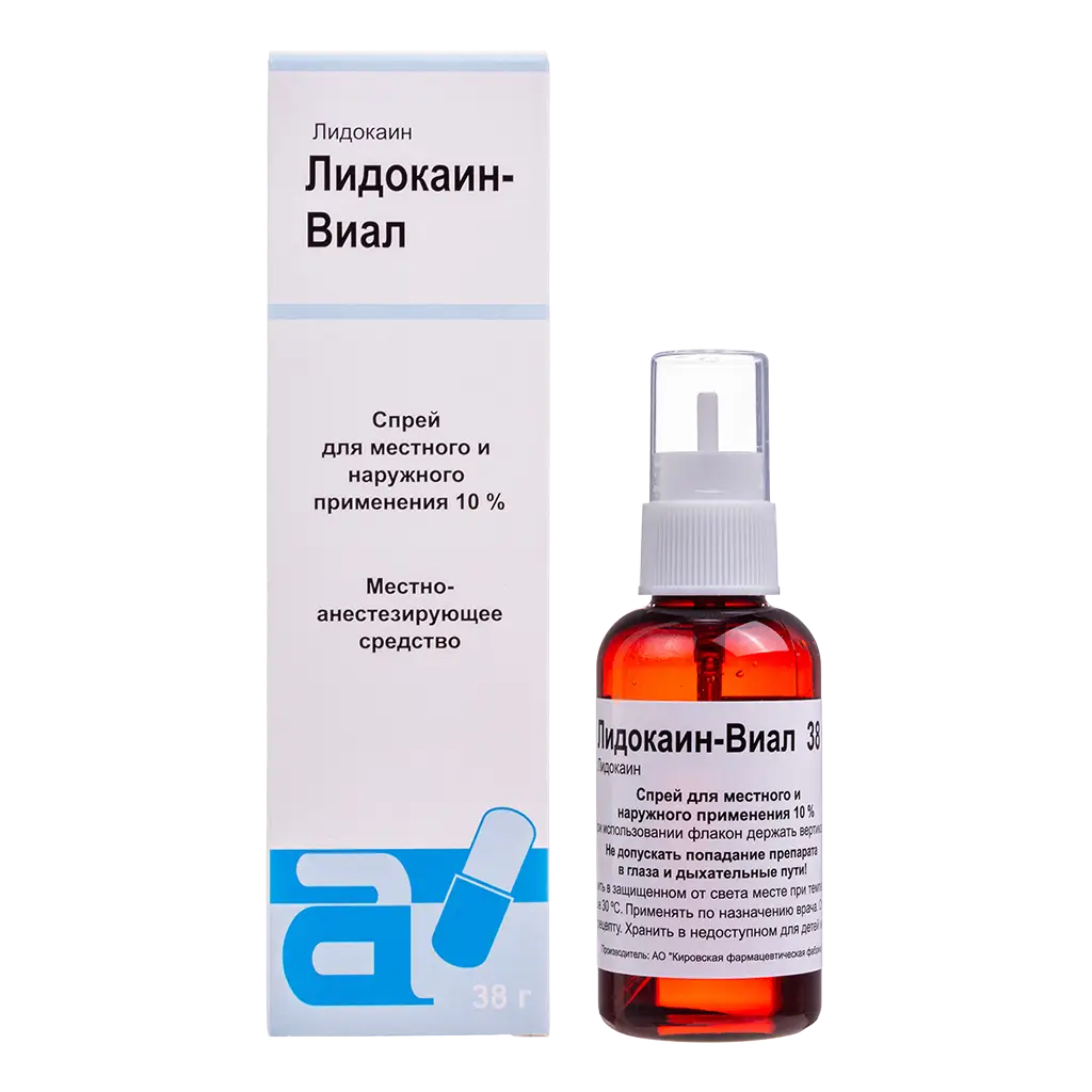 Лидокаин-Виал спрей для местного и наружного применения 10% флакон 38г