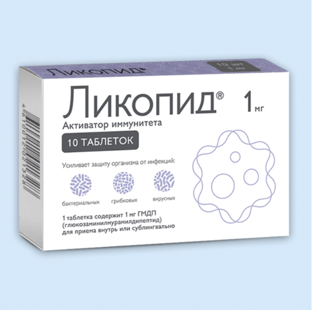 Действующее вещество таблеток Ликопид® — глюкозаминилмурамиадипептид (ГМДП) — представляет собой синтетический аналог структурного фрагмента оболочки (пептидогликана) бактериальных клеток. ГМДП является активатором врожденного и приобретенного иммунитета, усиливает защиту организма от вирусных, бактериальных и грибковых инфекций оказывает адъювантный эффект в развитий иммунологических реакций.