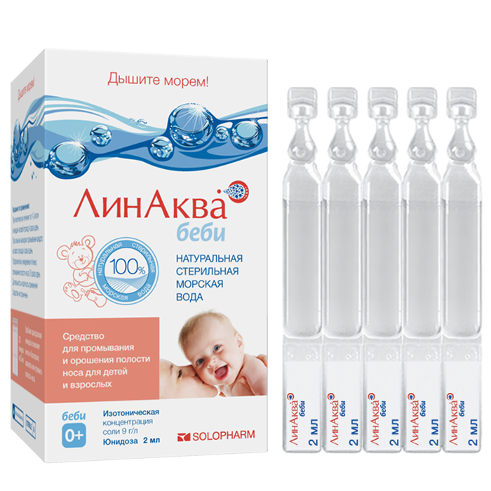 Средство для промывания и орошения полости носа «ЛинАква беби» юнидозы может применяться у детей от 0 лет:
