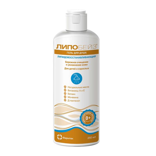 ЛИПОБЕЙЗ (LIPOBASE) гель для душа липидовосстанавливающий бережно и мягко очищает кожу, защищает от воздействия жёсткой воды. Смягчает, уменьшает сухость после душа и защищает кожу от воздействия жёсткой воды. Восполняет утраченные липиды, способствует восстановлению защитного барьера кожи, поддерживает физиологический рН.