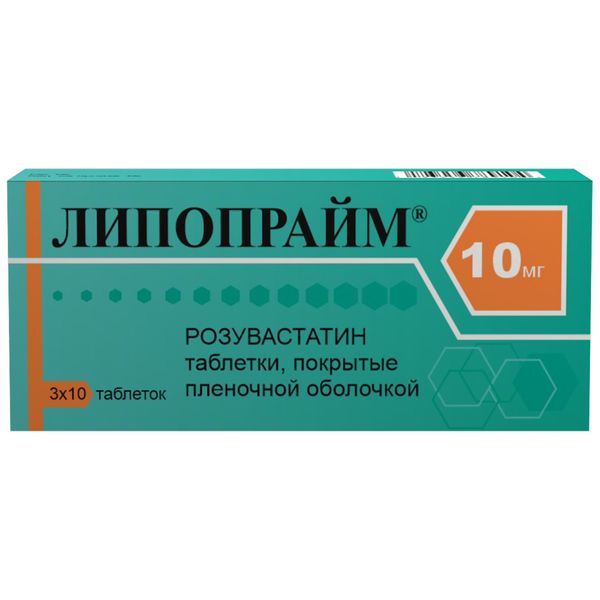 Липопрайм таблетки покрытые плёночной оболочкой 10мг №30