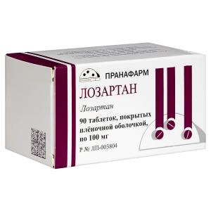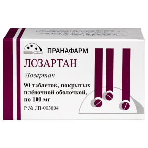 Лозартан таблетки покрытые пленочной оболочкой 100мг №90