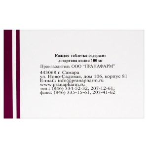 | Лозартан калия | 12,5 мг | 25 мг | 50 мг | 100 мг |