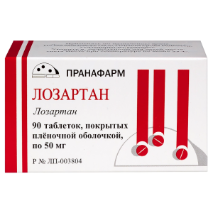 Лозартан таблетки покрытые пленочной оболочкой 50мг №90