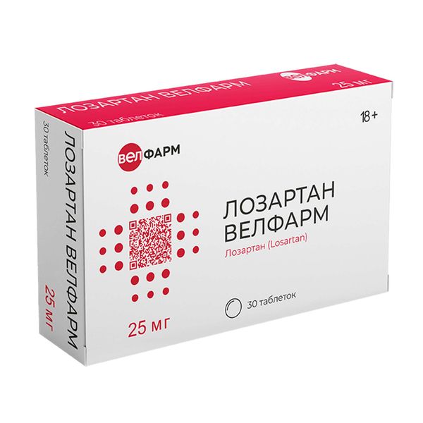 Лозартан Велфарм таблетки покрытые плёночной оболочкой 25мг №30