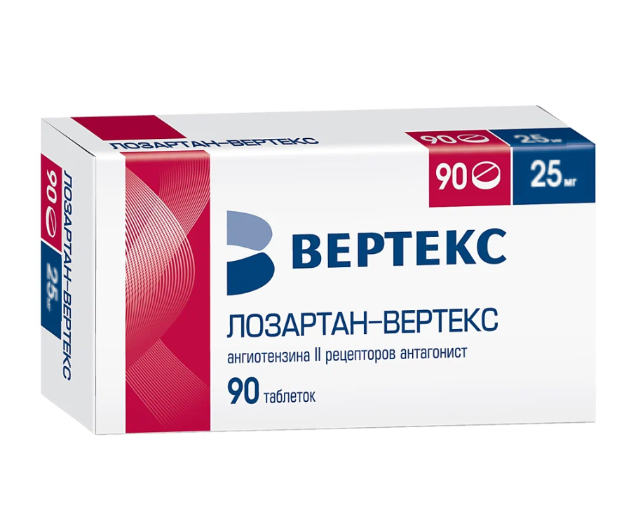 Лозартан-Вертекс таблетки покрытые пленочной оболочкой 25мг №90
