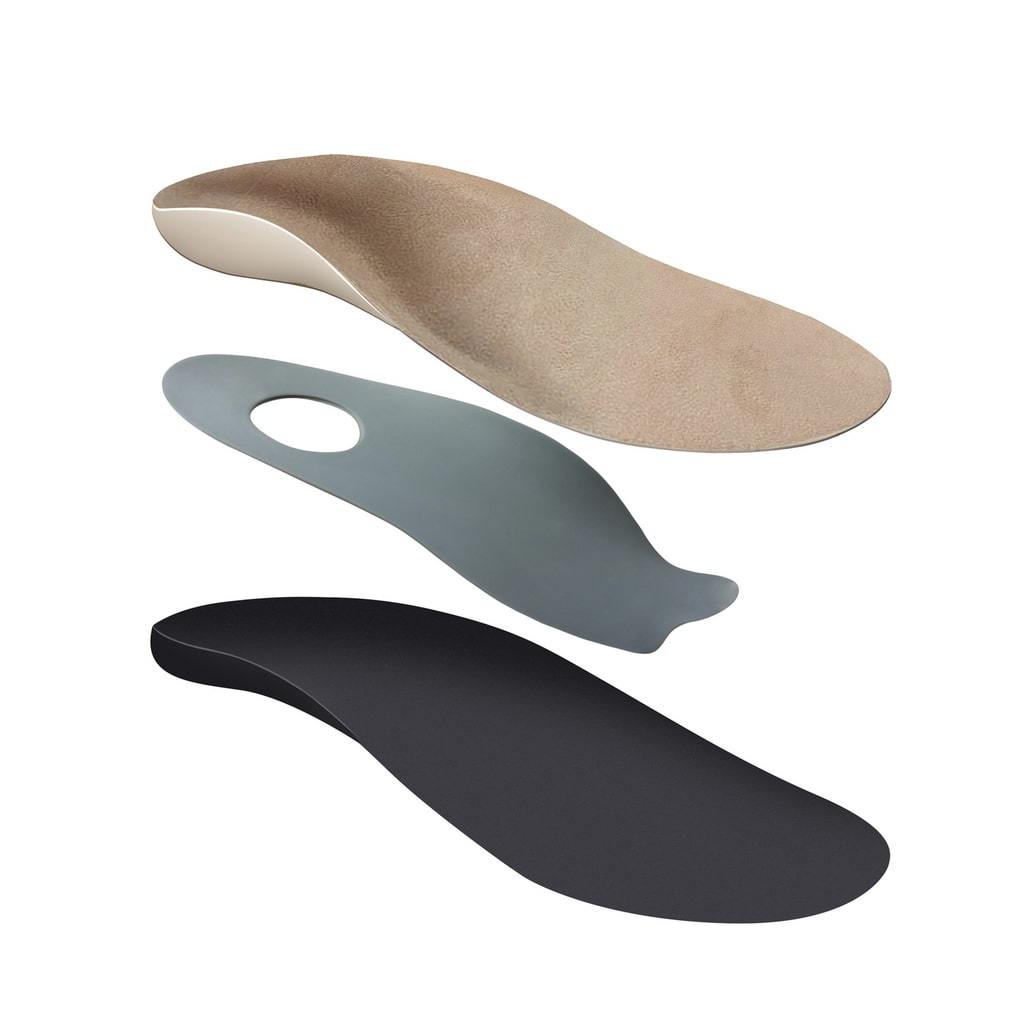 - вкладываются в закрытую обувь с высоким задником, фиксирующими элементами на подъеме (шнурки, велкро, пряжки) и каблуком до 2 см.