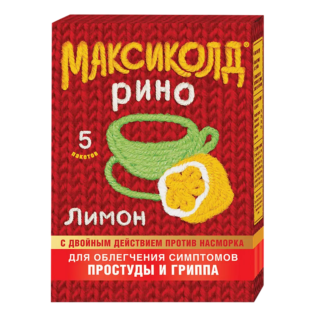 Максиколд Рино порошок для приготовления раствора для приема внутрь с ароматом лимона 325мг+10мг+20мг+50мг пакетики 15г №5