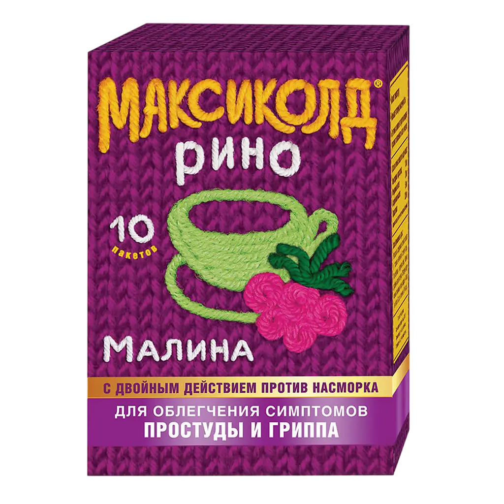 Максиколд Рино порошок для приготовления раствора для приема внутрь с ароматом малины 325мг+10мг+20мг+50мг пакетики 15г №10