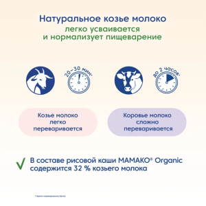 Детские молочные каши MAMAKO на козьем молоке — это бережный и вкусный злаковый прикорм малыша. Молочная рисовая каша MAMAKO — для самого первого прикорма с 4 месяцев. Низкоаллергенная, без глютена, быстрого приготовления. Легко усваивается благодаря козьему молочку и отсутствию глютена в рисе. Первая каша легкой кремовой консистенции дает все самое ценное для энергии и роста.