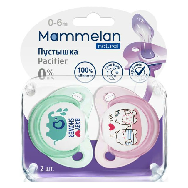 Пустышка Маммелан изготовлена из гипоаллергенных материалов: безопасного пластика без бисфенола А (ВРА) и 100% силикона.