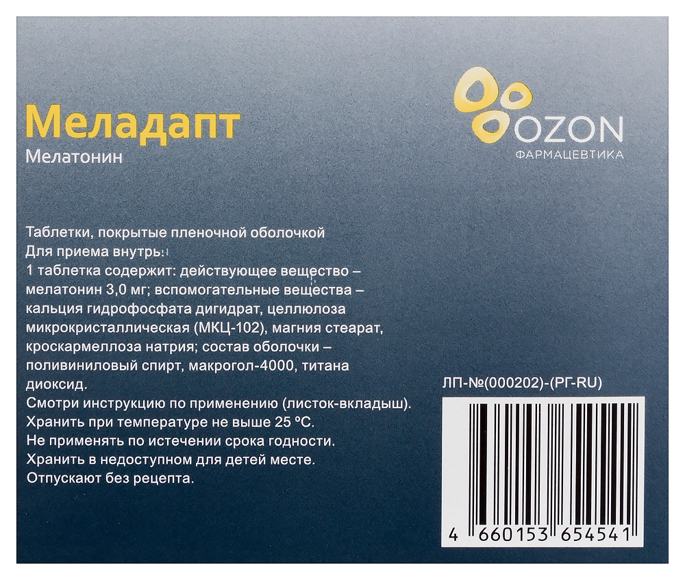 Меладапт таблетки покрытые плёночной оболочкой 3мг №30