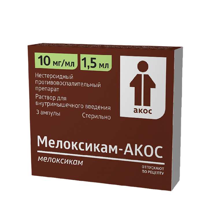 Мелоксикам-АКОС раствор для внутримышечного введения 10мг/мл ампулы 1.5мл №3
