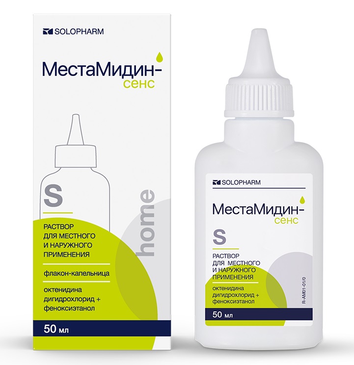 МестаМидин-сенс homе раствор для местного и наружного применения флакон с пробкой‑капельницей и навинчиваемой крышкой 50мл