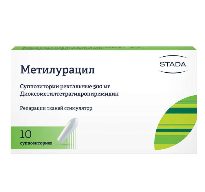 Действующее вещество - диоксометилтетрагидропиримидин (метилурацил) – 500 мг