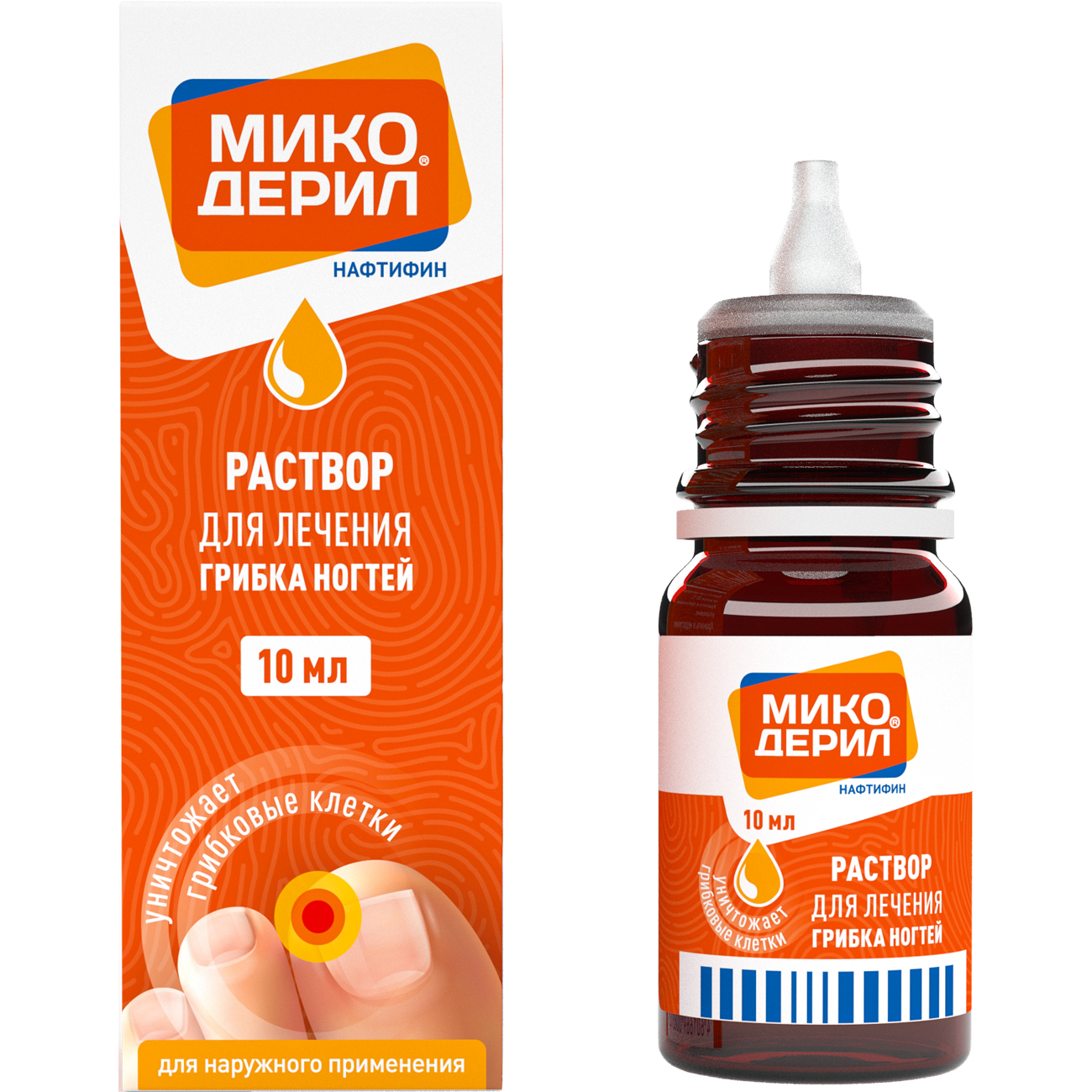 Микодерил®, раствор для наружного применения, 1 % — противогрибковое средство, предназначенное для наружного применения, относящееся к классу аллиламинов. Его активным ингредиентом является нафтифин. Механизм действия связан с ингибированием сквален-2,3-эпоксидазы, что приводит к снижению образования эргостерола, входящего в состав клеточной стенки гриба. Нафтифин, влияя на скваленэпоксидазу, не затрагивает систему цитохрома P-450.
