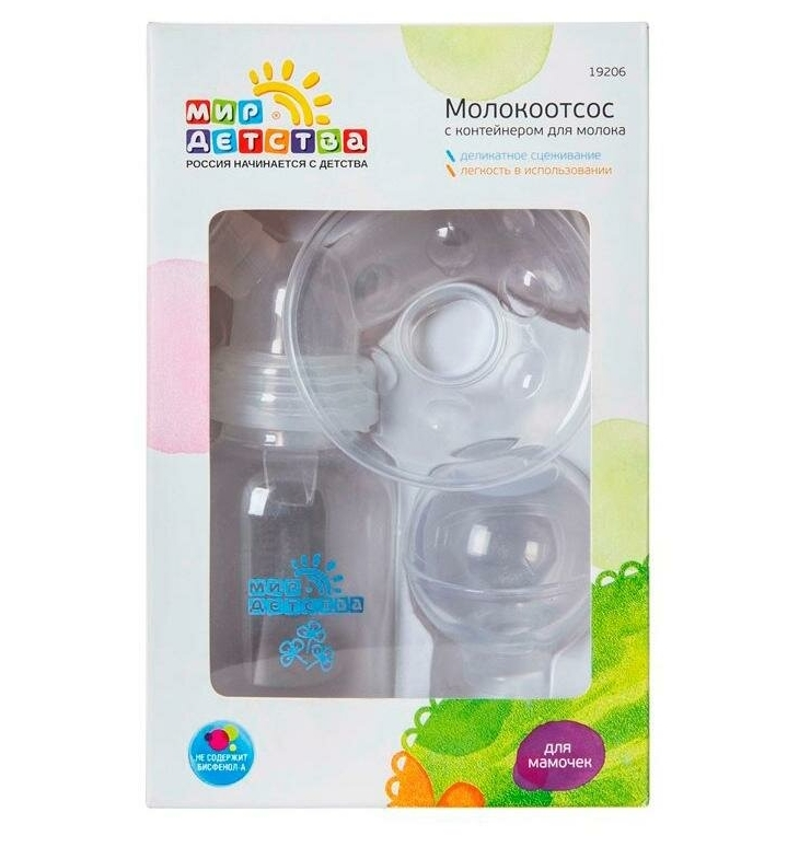 Молокоотсос совместим с бутылочками "Мир детства" со стандартным горлом.