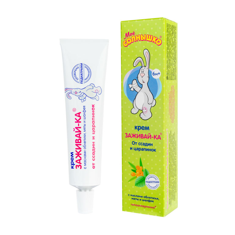 Крем создает воздухопроницаемую защитную пленку, которая «запечатывает» участки с заживающими ссадинами и царапинами, предохраняет их от загрязнения, нормализует природный защитный барьер и облегчает неприятные ощущения. Крем содержит комплекс с маслами облепихи, шалфея мускатного, аллантоидном, витаминами А, Е и маслом мяты.