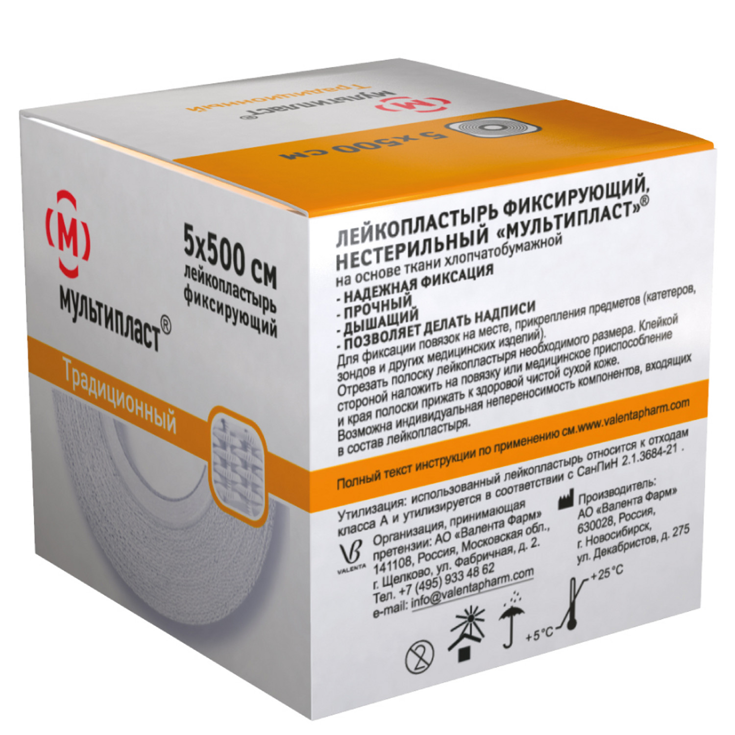 Лейкопластырь фиксирующий, нестерильный «Мультипласт»® по ТУ 21.20.24-001-44241667-2020 варианты исполнения: Лейкопластырь фиксирующий, нестерильный «Мультипласт»® на основе ткани хлопчатобумажной, следующих размеров (в сантиметрах): - 2х250, 2,5х250, 3х250, 1х300, 1,25х300, 2х300, 2,5х300, 3х300, 4х300, 5х300, 1х500, 1,25х500, 2х500, 2,5х500, 3х500, 4х500, 5х500