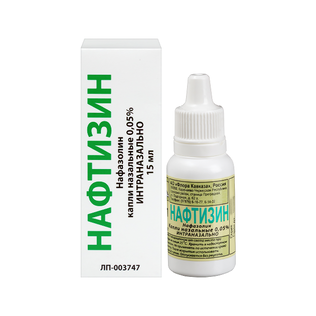 Действующее вещество: ;Нафазолина нитрат (нафтизин) ;0,0005 г, ;0,001 г.