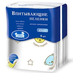 Купить Наша мама Пеленки впитывающие гигиенические одноразовые детские 60х60 см 5шт по низкой цене