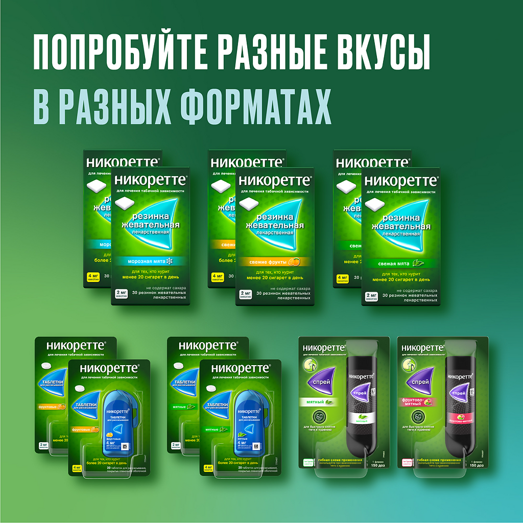 В комбинации с резинками жевательными, таблетками подъязычными, спреем для местного применения