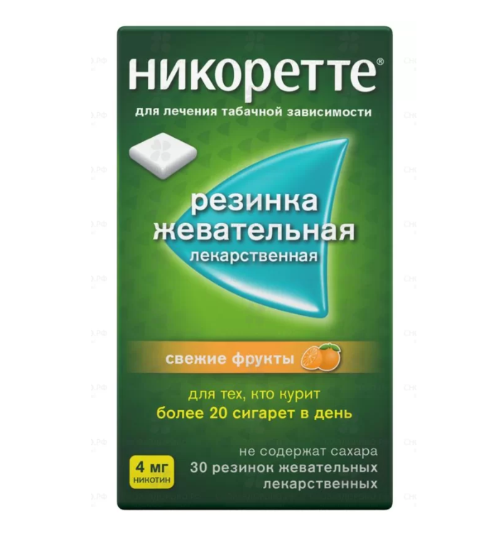 Никоретте резинка жевательная лекарственная свежие фрукты 4мг №30