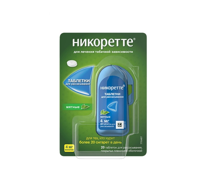 Никоретте таблетки для рассасывания покрытые пленочной оболочкой мятные 4мг №20