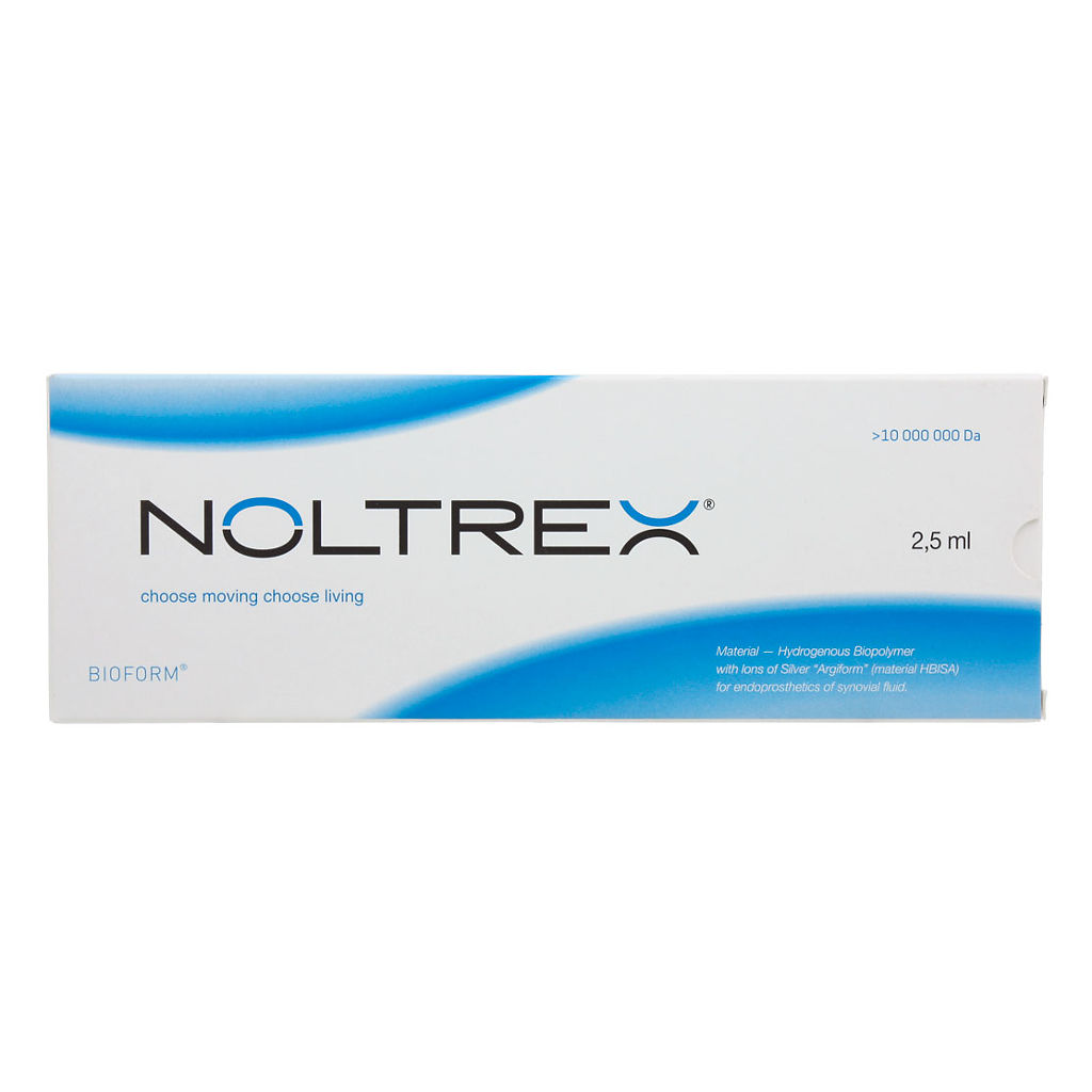 НОЛТРЕКС™ действует, восстанавливая вязкость синовиальной жидкости в суставах, пораженных остеоартрозом. В результате этого купируется болевой синдром, и улучшается подвижность сустава. Особенностью материала является более длительное действие в сравнении с фармацевтическими препаратами и материалами, восполняющими вязкость иновиальной жидкости, а также бактериостатические свойства за счёт присутствия ионов серебра. Тканевая и клеточная реакция на внутрисуставное введение: материал образует комплексное соединение с синовией, которое оптимизирует метаболизм суставных тканей. Введение не приводит к развитию синовита и дистрофического процесса в хряще. Тканевая реакция минимальна, проявляется гиперплазией и выселением в суставную полость синовиоцитов типа А (макрофагов). Биодеградация происходит через резорбцию макрофагами и неклеточный лизис. Подвергается очень медленной биодеструкции, разлагаясь до инертного полимера, после чего выводится через гломерулярный фильтр, не повреждая почечную ткань.