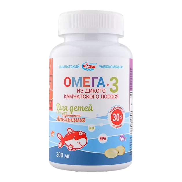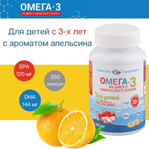 Омега-3 из дикого камчатского лосося для детей с 3-х лет с ароматом апельсина капсулы 300мг №250