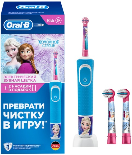 Электрическая зубная щетка Oral-B Kids для детей от 3 лет с веселыми героями мультфильма Disney «Холодное Сердце 2» обеспечивает эффективный бережный уход за полостью рта ребенка от Oral-B. Она удаляет больше зубного налета по сравнению с обычной мануальной зубной щеткой. В комплект входят 4 стикера с героями мультфильма Disney «Холодное Сердце», с помощью которых можно персонализировать зубную щетку.