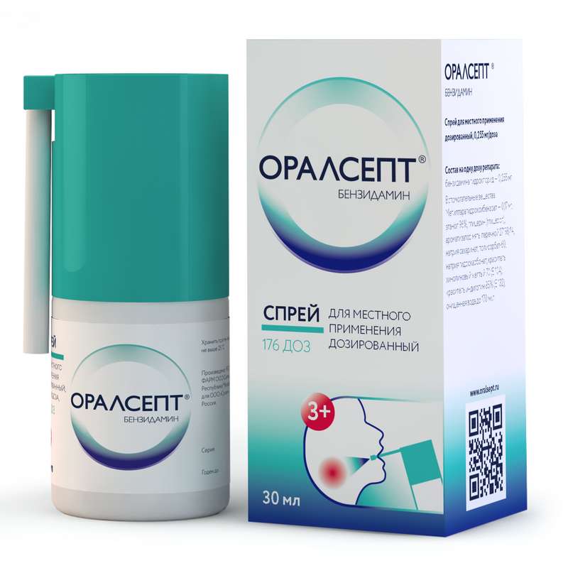 Оралсепт спрей для местного применения дозированный 0,255мг/доза флакон 30мл/176доз/