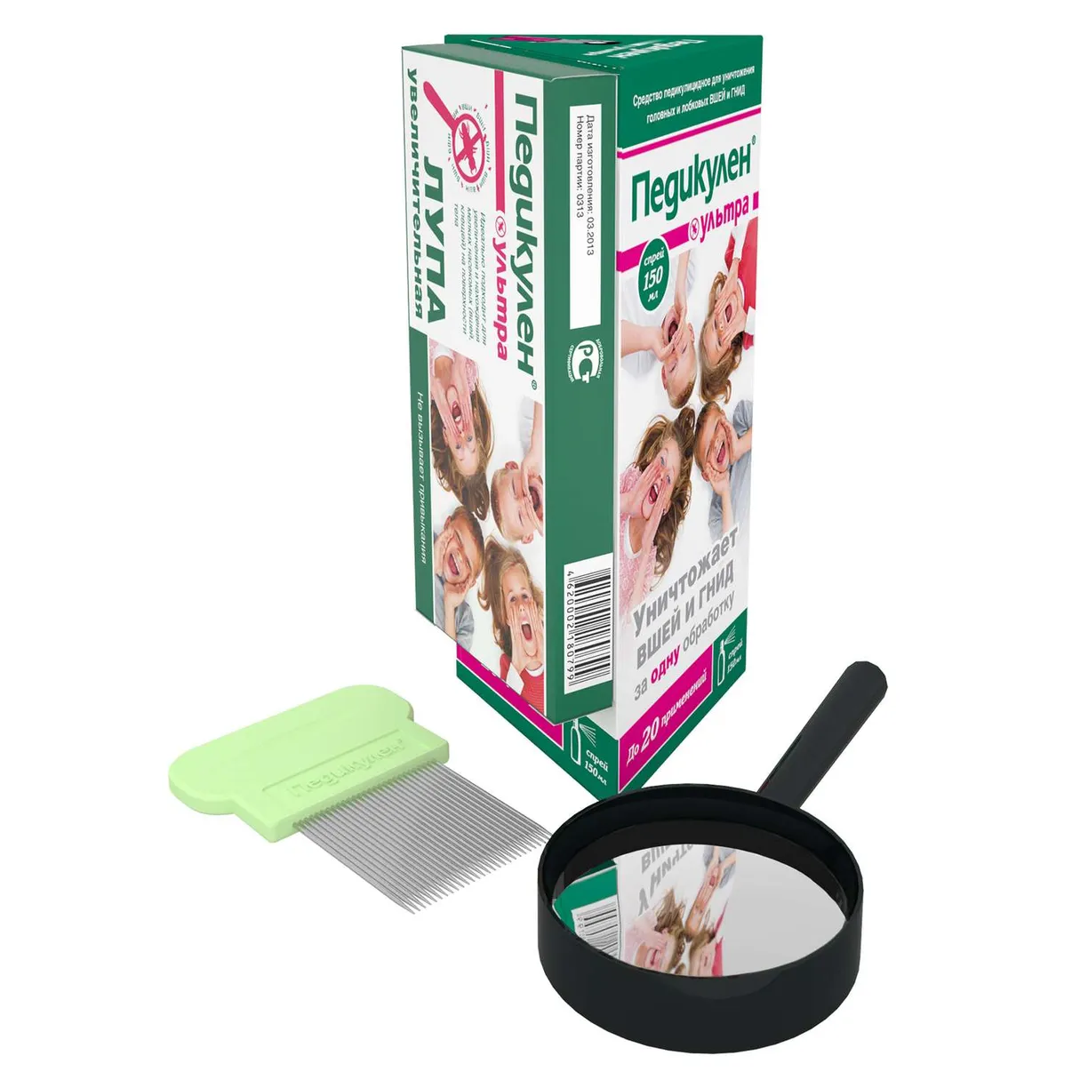 Педикулен ультра спрей от вшей и гнид флакон150мл + гребень + лупа увеличительная