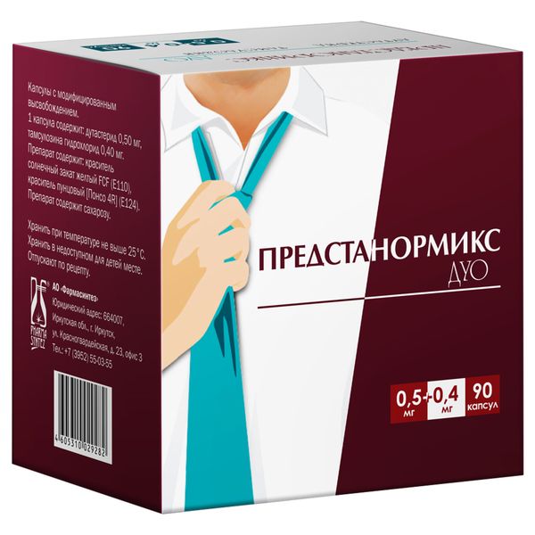 Активные вещества: Дутастерид 0.5 мг, Тамсулозин 0.4 мг.
