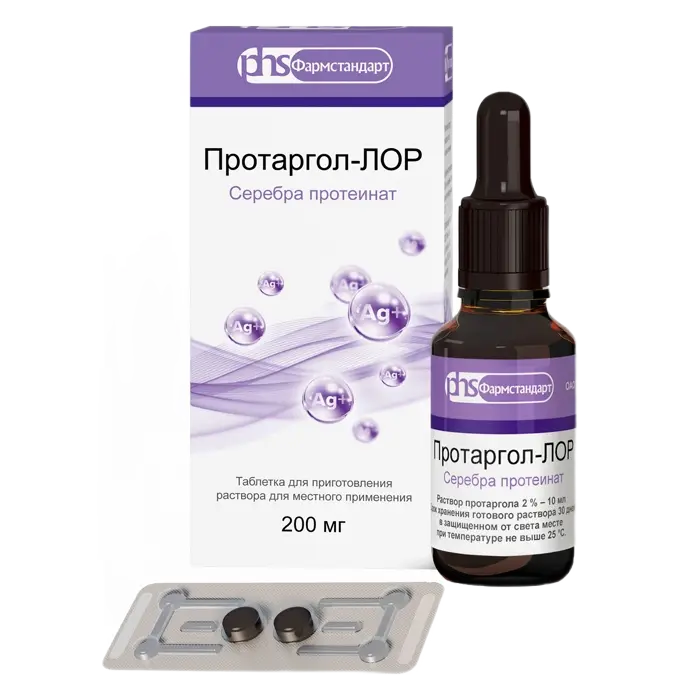 Действующее вещество: ;серебра протеинат (протаргол) — 200,0 ;мг.