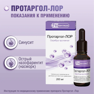 Протаргол-Лор таблетки для приготовления раствора для местного применения 200мг №2 в комплекте с флаконом и крышкой-пипеткой