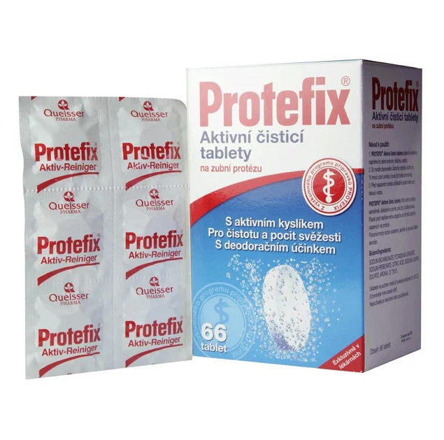 В течение дня в полости рта скапливаются остатки пищи, что обуславливает необходимость тщательной гигиены полости рта. Зубные протезы отрицательно влияют на состояние микрофлоры полости рта и нарушают процесс естественного самоочищения. Все это вызывает воспалительные процессы, образование налета и, как результат, неприятный запах во рту. Именно поэтому, одной только чистки протезов зубной щеткой недостаточно, необходимы специальные средства для ежедневного ухода за зубными протезами. Особенно хорошо в качестве таких средств зарекомендовали себя таблетки Protefix. Они содержат активный кислород, очищают протезы, уничтожают запахи, не разрушая при этом ценный материал, из которого изготовлены протезы, надолго сохраняют свежий запах во рту