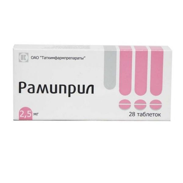 Активное вещество: рамиприл в пересчёте на 100 % вещество — 2,5 мг