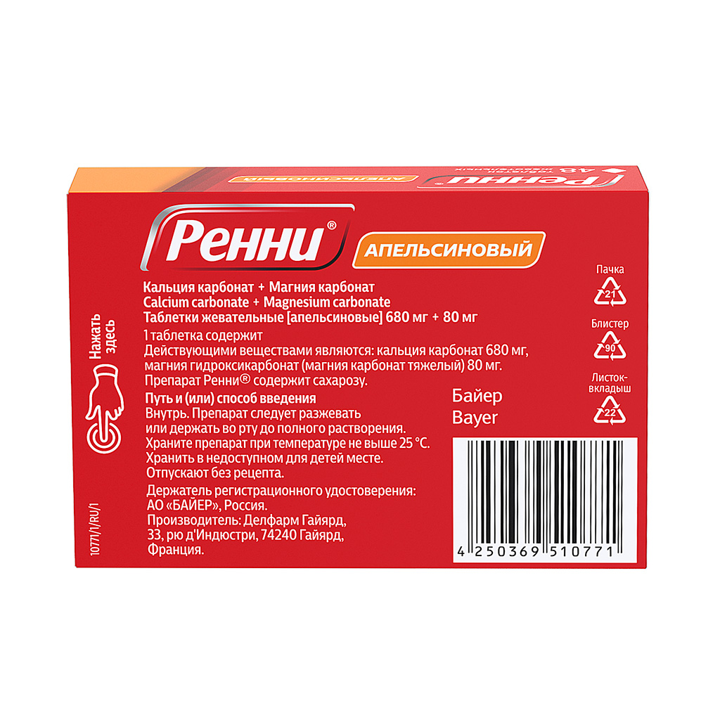Ренни таблетки жевательные апельсиновые 680мг+80мг №48