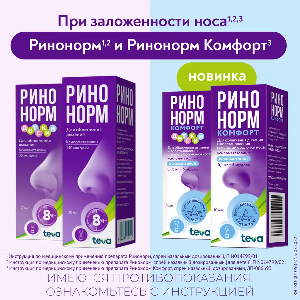 Для применения у взрослых и детей старше 10 лет следует использовать препарат Ринонорм-Тева, спрей назальный дозированный.