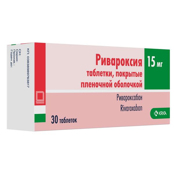 Каждая таблетка содержит 15 мг ривароксабана.