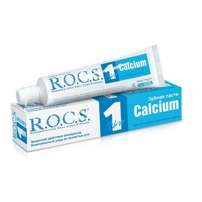 Зубная паста R.O.C.S. Uno Calcium. Обеспечивает качественное насыщение зубов кальцием и фосфором. Освежающий аромат мяты с нотками мандарина.