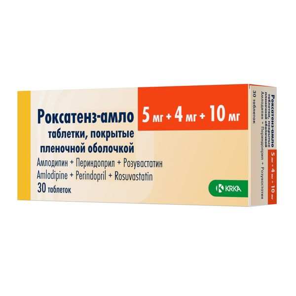 Роксатенз-амло, 5 мг + 4 мг + 10 мг, таблетки, покрытые плёночной оболочкой
