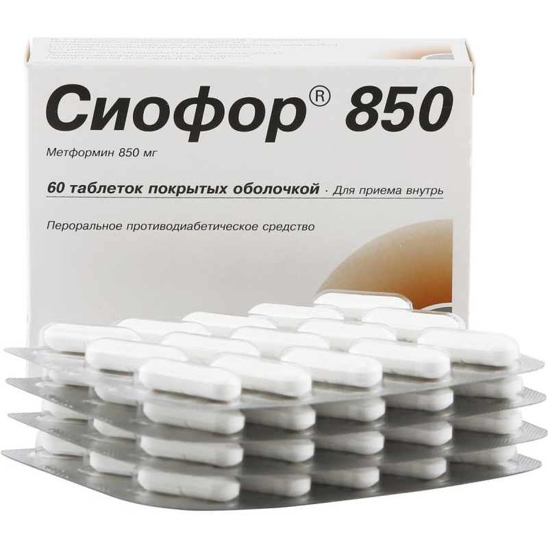 Рекомендуемая начальная доза составляет 850 мг (1 таблетка препарата Сиофор® 850) 2-3 раза в сутки во время или после еды.