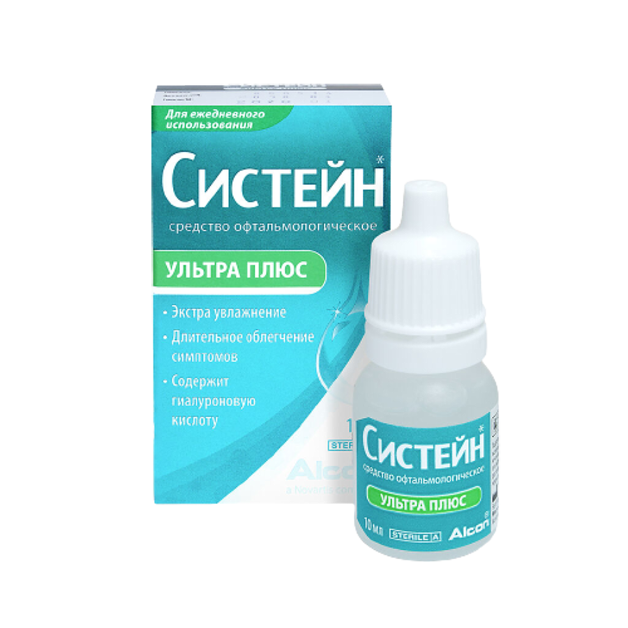 - Средство офтальмологическое СИСТЕЙН УЛЬТРА ПЛЮС обеспечивает временное облегчение симптомов синдрома «сухого глаза», таких как чувство жжения и раздражение.
