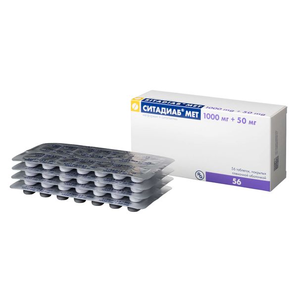 Ситадиаб Мет таблетки покрытые пленочной оболочкой 1000мг+50мг №56
