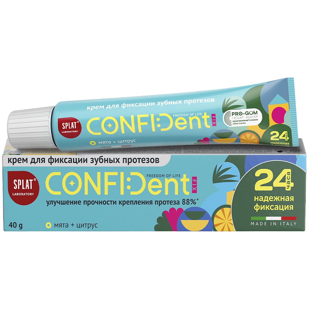 Крем для фиксации зубных протезов CONFIDent Fix разработан Инновационной Лабораторией SPLAT совместно с итальянской компанией BetaPharm. Это не просто крем для фиксации протезов — это забота о дёснах, ваш комфорт и лучезарная улыбка!